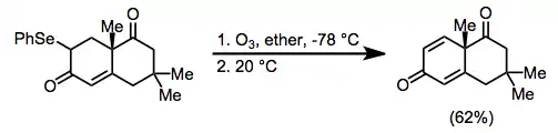 Ozone, which gives only dioxygen as a byproduct after oxidation, is used to oxidize selenides when special conditions are required for thermolysis or extreme care is necessary during workup. Quinones can be synthesized from the corresponding cyclic unsaturated carbonyl compounds using this method.[12]