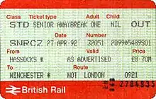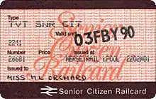 - ↑ "Senior Railcard: Tickets with which you can use your discount". Archived from the original on 3 July 2007.