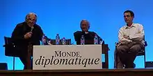 ![]() Daniel Mermet, Noam Chomsky and Serge Halimi in Paris (May 2010). | |