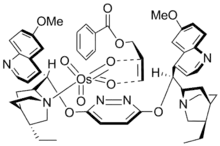Sharpless asymmetric dihydroxylation (also called the Sharpless bishydroxylation) is the chemical reaction of an alkene with osmium tetroxide in the presence of a chiral quinine ligand to form a vicinal diol. The reaction has been applied to alkenes of virtually every substitution, often high enantioselectivities are realized, with the chiral outcome controlled by the choice of dihydroquinidine (DHQD) vs dihydroquinine (DHQ) as the ligand. Asymmetric dihydroxylation reactions are also highly site selective, providing products derived from reaction of the most electron-rich double bond in the substrate.[1][2][3]