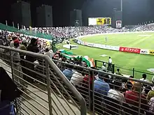 The Sheikh Zayed Cricket Stadium (Arabic: ملعب زايد للكريكت) is a cricket ground located in Abu Dhabi, United Arab Emirates. The $23 million stadium, built by Concor, opened in May 2004,[1] with its inaugural first-class match being an Intercontinental Cup fixture between Scotland and Kenya in November of that year. The stadium was one of the dedicated venues for the 2021 ICC Men's T20 World Cup.