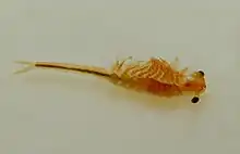 brine shrimp | 8 | Brine shrimp belong to the genus Artemia. They live in inland saltwater lakes in unusually high salinities, which protects them from most predators. They produce eggs, called cysts, which can be stored in a dormant state for long periods and then hatched on demand. This has led to the extensive use of brine shrimp as fish feed in aquaculture.[47] Brine shrimp are sold as novelty gifts under the marketing name Sea-Monkeys. | ||