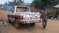 On 26 June 2015, one of the leaders of PK5 self-defense groups, Haroun Gaye, forced a voter registration drive in PK5 to close. On 2 August 2015, MINUSCA, the United Nations peacekeeping force, tried to arrest him. Gaye's soldiers managed to repel the attacks of the international forces for seven hours using firearms, rocket launchers, and grenades, allowing him to escape. One peacekeeper was killed and eight were injured in the fighting.[6] On 25 September, in response to the murder of a Muslim driver, PK5 self-defense groups attacked Christian neighborhoods north of the enclave. Anti-balaka responded by erecting barricades, preventing UN soldiers from accessing areas plagued by violence. On 15 October, three people were killed and a dozen injured in clashes between Anti-balaka and self-defense groups after Anti-balaka fired at a group of Muslim boys playing soccer.[7] Between 26 September and 13 November, further clashes killed at least 100 people, displaced 35,000, and destroyed more than 1,075 buildings.[8]