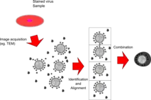 Single particle analysis is a group of related computerized image processing techniques used to analyze images from transmission electron microscopy (TEM).[1] These methods were developed to improve and extend the information obtainable from TEM images of particulate samples, typically proteins or other large biological entities such as viruses. Individual images of stained or unstained particles are very noisy, and so hard to interpret. Combining several digitized images of similar particles together gives an image with stronger and more easily interpretable features. An extension of this technique uses single particle methods to build up a three-dimensional reconstruction of the particle. Using cryo-electron microscopy it has become possible to generate reconstructions with sub-nanometer resolution and near-atomic resolution[2][3] first in the case of highly symmetric viruses, and now in smaller, asymmetric proteins as well.[4] Single particle analysis can also be performed by induced coupled plasma mass spectroscopy (ICP-MS).