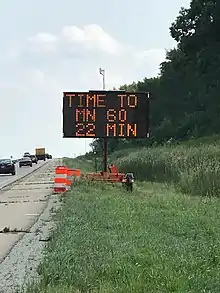 Sensors detect traffic flow through this 15 mile Smart Work Zone and display "travel time" to drivers.
