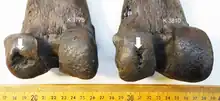 Fossils of Smilodon were discovered in North America from the second half of the 19th century onwards.[1] In 1869, American paleontologist Joseph Leidy described a maxilla fragment with a molar, which had been discovered in a petroleum bed in Hardin County, Texas. He referred the specimen to the genus Felis (which was then used for most cats, extant as well as extinct) but found it distinct enough to be part of its own subgenus, as F. (Trucifelis) fatalis.[5] The species name means "deadly".[6] In an 1880 article about extinct American cats, American paleontologist Edward Drinker Cope pointed out that the F. fatalis molar was identical to that of Smilodon, and he proposed the new combination S. fatalis.[7] Most North American finds were scanty until excavations began in the La Brea Tar Pits in Los Angeles, where hundreds of individuals of S. fatalis have been found since 1875.[1] S. fatalis has junior synonyms such as S. mercerii, S. floridanus, and S. californicus.[4] American paleontologist Annalisa Berta considered the holotype of S. fatalis too incomplete to be an adequate type specimen, and the species has at times been proposed to be a junior synonym of S. populator.[3] Nordic paleontologists Björn Kurtén and Lars Werdelin supported the distinctness of the two species in an article published in 1990.[8] A 2018 article by the American paleontologist John P. Babiarz and colleagues concluded that S. californicus, represented by the specimens from the La Brea Tar Pits, was a distinct species from S. fatalis after all and that more research is needed to clarify the taxonomy of the lineage.[9]