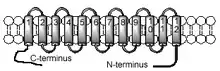 The putative topology of yeast Snf3. The C-terminal extension is not shown in its complete size. In reality it comprises 303 of the 845 residues.