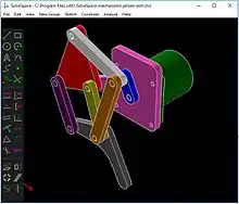 In order to verify a newly modeled concept in SolveSpace, users can "link" all the components and constrain them at specific positions to check whether the virtual end-product meets the original concept's design and constraints.[15]