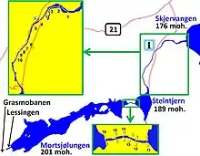 The Soot Canal (Norwegian: Sootkanalen) was a canal system located in Eidskog Municipality in Innlandet county, Norway. Constructed in 1849, it has Norway's oldest sluice gates. It was the work of Engebret Soot (1786-1859). It was built to allow timber to be transported (floated) to the Halden sawmills. The canal was 1.5 kilometres (0.93 mi) long and had 16 locks which extended from Lake Skjervangen at an elevation of 185 metres (607 ft) above sea level up to Lake Mortsjølungen at 201 metres (659 ft) above sea level.[1][2]