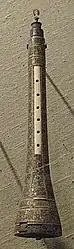 The word was most likely borrowed from an unknown Indo-European cognate of Luwian 𒍪𒌨𒉌 (zurni, “horn”), Sanskrit शृङ्ग (ṡṛṅga, “horn”), Latin cornū, and English horn, probably ultimately from Proto-Indo-European *ḱerh₂-. A folk etymology explains that the word sorna is a Pahlavi derivative of sūrnāy (literally "strong flute"), which is a compand of 'sūr-' (strong) and '-nāy' (flute).[1] According to such folk etymology, it was called "strong flute" due to its double-reed-construction rather than usual nāy (Persian: نای), which was made of a single tube of cane, while another folk etymology believes that that the first part of word of sorna, is from sūr- again from Pahlavi and New-Persian, meaning the "banquet, meal and feast", thus the "banquet-flute".[1]