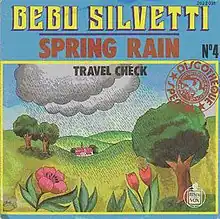 Released in 1975 the single did not receive airplay and chart in the USA until January 1977 when, driven by popularity in discos, it peaked at #39 in the Billboard Hot 100 chart the week of March 19, 1977,[2] joining the list of 1970s one-hit wonders in the United States. In the US, on the National Disco Action Top 40 chart, "Spring Rain" went to #4.[3] "Spring Rain" was also a hit on the Easy Listening chart, peaking at #13.[4]