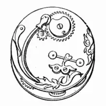 A stackfreed is a simple spring-loaded cam mechanism used in some of the earliest antique spring-driven clocks and watches to even out the force of the mainspring, to improve timekeeping accuracy.[1][2][3] Stackfreeds were used in some German clocks and watches from the 16th to the 17th century,[4] before they were replaced in later timepieces by the fusee. The term may have come from a compound of the German words starke ("strong") and feder ("spring").[5][6]