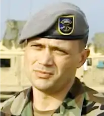 An Air Force weather parachutist—a staff weather officer with the 82nd Airborne Division—wearing grey beret with Combat Weather Team Beret Flash and crest (2007)
