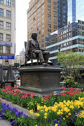 Horace Greeley, also known as the Greeley Memorial,[1] is an outdoor bronze sculpture of Horace Greeley by Alexander Doyle, located in Greeley Square Park in Manhattan, New York. The statue, cast in 1892 and dedicated on May 30, 1894, sits atop a Quincy granite pedestal.[2] It contains the following inscription: