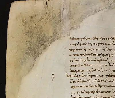 The libraries of Europe contain many medieval copies of ancient Greek and Latin texts. Many of these contain short notes or 'subscriptions' on the final page that, in hundreds of cases, give the total number of lines in the work.[9] In texts of classical authors such as Herodotus and Demosthenes, these totals are expressed in the older, acrophonic numerals that were used in Athens during the classical period but abandoned sometime during the Hellenistic period.[10] Thus these stichometric totals are thought to descend, along with the content of the texts, from very early editions.[11]