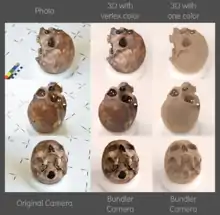 Real photo x SfM with texture color x SfM with simple shader. Made with Python Photogrammetry Toolbox GUI and rendered in Blender with Cycles.