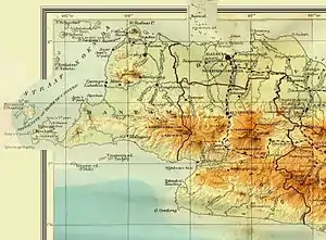 Banten Residency after annexation to Dutch East Indies, with neighbouring Batavia (now Jakarta) and Buitenzorg (now Bogor)