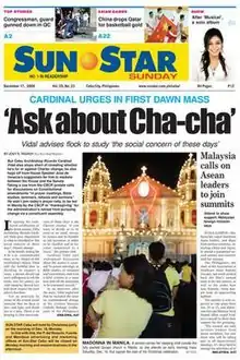 SunStar Cebu, formerly stylized as Sun•Star Cebu (formerly Sun•Star Daily), is a community newspaper in Cebu City, the Philippines. It is the flagship newspaper of the SunStar network of newspapers and is the leading newspaper in both Metro Cebu and the province of Cebu. It was named Sunstar Daily when it was first founded in November 25, 1982, and changed its name to Sunstar Cebu in 2000.[3]
