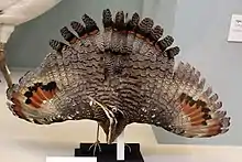 The sunbittern is usually placed in the Gruiformes, but this was always considered preliminary. Altogether, the bird is most similar to another bird that was provisionally placed in the Gruiformes, the kagu (Rhynochetos jubatus).[4][5] Molecular studies seem to confirm that the kagu and sunbittern are each other's closest living relatives and have a similar wing display.[6][7] They are probably not Gruiformes (though the proposed Metaves are just as weakly supported).[8] Altogether, the two species seem to form a minor Gondwanan lineage which could also include the extinct adzebills and/or the mesites, and is of unclear relation to the Gruiformes proper. Notably, the kagu and mesites also have powder down.