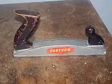 A surform tool (also surface-forming tool[1]) features perforated sheet metal and resembles a food grater. A surform tool consists of a steel strip with holes punched out and the rim of each hole sharpened to form a cutting edge. The strip is mounted in a carriage or handle. Surform tools were called "cheese graters"[2][3] decades before they entered the market as kitchen utensils used to grate cheese.[4][5] Surform planes have been described as a cross between a rasp and a plane.[6]
