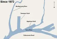 Swanson Dock is an international shipping facility in Melbourne, Victoria, Australia. It was constructed between 1966 and 1972 by the Melbourne Harbor Trust, leading off the north bank of the Yarra River, to alleviate congestion in the port and provide the first container shipping terminal in Melbourne.[1] It is located about 2 km downstream from the Melbourne CBD and was named after Victor Swanson, chairman of the Melbourne Harbor Trust from 1960 to 1972.[2]