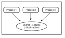 Figure 1: Three processes accessing a shared resource (critical section) simultaneously.
