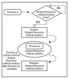 Figure 2: A process accessing a shared resource if available, based on some synchronization technique.
