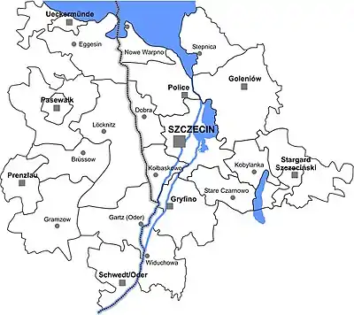 Szczecin agglomeration or Stettin agglomeration is the urban agglomeration of the city of Szczecin and surrounding towns[3] in the Polish-German border area.