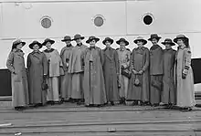 On 1 June 1915, the vessel was requisitioned again for military service.[6] Kanowna transported soldiers and supplies to Egypt, then made for England, where she was modified for use as a hospital ship.[6] After completion, Kanowna could carry 452 wounded in cots, along with a medical staff of 88 in addition to her regular crew.[7] Sailing in September, Kanowna was used to transport Royal Army Medical Corps personnel to locations throughout the Mediterranean, then collected wounded Australian personnel and transported them home.[7] She would make a total of 10 voyages between Australia and England in the next three years,[8] although some runs were made to England with British wounded.[7] In May 1917, the unrestricted submarine warfare campaign forced the ship to sail around Africa instead of through the Mediterranean: the nurses and medical staff were transported overland from Durban to London, and used to supplement hospital personnel until Kanowna arrived in July.[7] In October 1918, after the war's end, the hospital ship was sent to collect 900 British and Commonwealth prisoners-of-war that had been interred in Turkey.[7] Kanowna was returned to the AUSNC on 29 July 1919, and she resumed passenger and cargo service.[1][7][8]