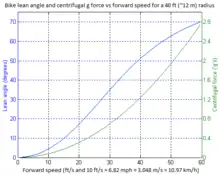 Graph of bike lean angle vs forward speed, assuming unlimited friction between tires and ground.