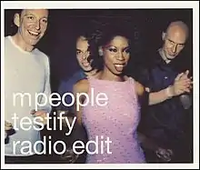 "Testify" is the eighteenth overall single from British band M People. It is the lead single from their greatest hits albums, The Best of M People and, in North America, Testify. It was written by Mike Pickering, Paul Heard and Heather Small, and produced by M People. The single was released on 26 October 1998 and peaked at number 12 on the UK Singles Chart. It also peaked at number 10 in Scotland and number 66 on the Eurochart Hot 100 in November 1998.