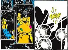 The Snap as depicted in The Infinity Gauntlet series