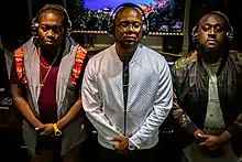 The Co-Captains are an American production team, consisting of Jovan J. Dawkins, Jevon Hill and Stanley Green Jr.[1] They have produced songs for Travis Barker ("Sixteen"), Mario ("Music for Love") and Nelly ("U Know U Want To"). One of their most notable productions was for Ciara and Nicki Minaj's 2013 song "I'm Out", which debuted at No. 44 on the Billboard charts.[2] The Co-Captains, who have also produced for Omarion and season 12 American Idol winner Candice Glover,[3] credit part of their musical style and influences to Teddy Riley, Timbaland and Phil Collins.[1] Dawkins is also the founder of Heritage Music Group,[4] which earned five Grammy wins in 2018. Among those awards were R&B Album of The Year (Bruno Mars, 24K Magic), Song of The Year (Bruno Mars, "That's What I Like"), and Best R&B Song of The Year (Bruno Mars, "That's What I Like").