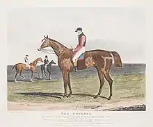 The Colonel was a "compact"[1] chestnut horse with a broad white blaze standing 15.2 hands high. He was owned and bred by Edward Petre (17941848), a free-spending sportsman and gambler,[2] who was a younger son of Robert Petre, 9th Baron Petre. The Colonel was sired by the Duke of Grafton's horse Whisker who won the 1815 Epsom Derby before becoming a successful breeding stallion.[3] His dam, an unnamed daughter of Delpini also produced My Lady, an influential broodmare whose modern descendants include Midway Lady and Eswarah.[4] Like the rest of Edward Petre's horses, The Colonel was trained by John Scott, who sent out the winners of 41 classics, from his Whitewall Stables at Malton in North Yorkshire. The colt was ridden in most of his early races by his trainer's younger brother Bill Scott.