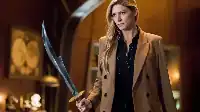 Ava Sharpe holding a sword used to kill encores.