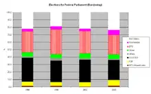 The Party of Democratic Socialism (German: Partei des Demokratischen Sozialismus, PDS) was a democratic socialist political party in Germany active between 1989 and 2007.[2] It was the legal successor to the Socialist Unity Party of Germany (SED), which ruled the German Democratic Republic (East Germany) as a state party until 1990.[3] From 1990 through to 2005, the PDS had been seen as the left-wing "party of the East". While it achieved minimal support in western Germany, it regularly won 15% to 25% of the vote in the eastern new states of Germany, entering coalition governments with the Social Democratic Party of Germany in the federal states of Mecklenburg-Vorpommern and Berlin.[4]