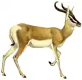- ↑ Bärmann, E.V.; Rössner, G.E.; Wörheide, G. (2013). "A revised phylogeny of Antilopini (Bovidae, Artiodactyla) using combined mitochondrial and nuclear genes". Molecular Phylogenetics and Evolution. 67 (2): 484–93. doi:10.1016/j.ympev.2013.02.015. PMID 23485920.