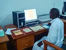 Another project was seeded in 2005, when Aluka[20] (which later integrated with JSTOR) began a dialogue with members of library and scholarly communities, expressing its interest in helping to solve some of the challenges faced by libraries in Timbuktu. In January 2007, after a series of meetings and discussions in Cape Town, New York, and Timbuktu, Aluka entered into a formal partnership with SAVAMA-DCI (L’organisation Non Gouvernmentale pour la Sauvegarde et la Valorisation des Manuscrits pour la Defense de la Culture Islamique), a Timbuktu-based NGO whose mission is to help private manuscript libraries in Mali safeguard, preserve, and understand their intellectual treasures. As part of this project, Aluka also partnered with two academic groups, Northwestern University’s Advanced Media Production Studio (NUAMPS), led by Mr. Harlan Wallach, and the Tombouctou Mss Project at the University of Cape Town’s Department of Historical Studies. Some of the images are published in a project report from Aluka.[21] Over 300 digitized manuscripts are available to researchers and were featured in Aluka’s online archive as part of its African Cultural Heritage Sites and Landscapes digital library, which was later integrated with JSTOR.[22][23]