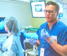 Todd Huntley Baron is an American gastroenterologist who is Professor of Medicine at the University of North Carolina School of Medicine.[1] Additionally, he currently serves as the Director of Advanced Therapeutic Endoscopy within UNC's Division of Gastroenterology and Hepatology. He is known for his publishing in the field of gastroenterology particularly in endoscopic retrograde cholangiopancreatography (ERCP), endoscopic ultrasound (EUS) and other advanced endoscopic procedures.[2] He has developed interventional endoscopic techniques for the care of patients with gastrointestinal, liver and other medical conditions.[3] He was the first to describe endoscopic drainage of the gallbladder, placement of a colonic stent, and endoscopic pancreatic necrosectomy.