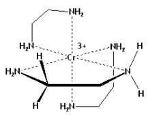 Diastereotopicity is not limited to organic molecules, nor to groups attached to carbon, nor to molecules with chiral tetrahedral (sp3-hybridized) centers: for instance, the pair of hydrogens in any CH2 or NH2 group in tris(ethylenediamine)chromium(III) ion (Cr(en)33+), where the metal center is chiral, are diastereotopic (Figure 2).
