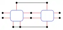The balanced form of ladder topology can be viewed as being the graph of the side of a prism of arbitrary order. The side of an antiprism forms a topology which, in this sense, is an anti-ladder. Anti-ladder topology finds an application in voltage multiplier circuits, in particular the Cockcroft-Walton generator. There is also a full-wave version of the Cockcroft-Walton generator which uses a double anti-ladder topology.[10]