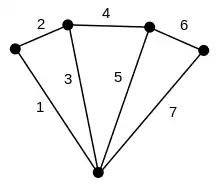 - ↑ Distance between trees is defined as the number of edges that are in one tree but not in the other. That is, it is the number of edges which must be changed in order to transform one tree into the other (Kishi and Kajitani, p.323).