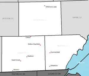 Britton-Macon and Deerfield combined all sports starting with the 2009-10 sports season, although they already were combining some sports for several years. Their districts combined on July 1, 2011 into the Britton Deerfield School District.[4]