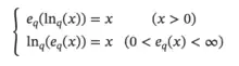 The q-logarithm is the inverse of q-exponential and a deformation of the logarithm using the real parameter q.[3]