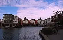 Tualatin is home to a majority of Bridgeport Village ("Bridgeport"), an upscale shopping area that opened in early 2005.[13] (The northern part of Bridgeport Village is in Tigard.) Built at the site of a former quarry, Bridgeport was designed to be reminiscent of an open-air European-style shopping experience. It features an 18-screen movie theater, several national and regional chain restaurants, and many chain retail stores.