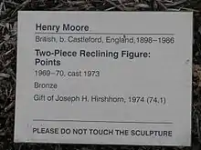 6. "Two-Piece Reclining Figure: Points". Hirsshorn Museum and Sculpture Garden. Archived from the original on 16 February 2022. Retrieved 16 February 2022.