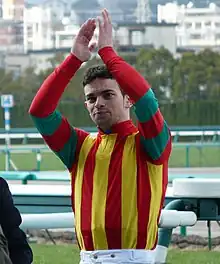Umberto Rispoli (born 31 August 1988 in San Severino Marche, Italy) is a horse racing jockey. He commenced his apprenticeship in 2005 and graduated to the senior ranks in 2010. He was a member of the Hong Kong Jockey Club until December 2019 when he moved his tack to Southern California.[1][2] As of July 2022, Rispoli has accrued over $21 million in purses and won 297 races.[3]