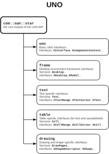 Universal Network Objects (UNO) is the component model used in the OpenOffice.org and LibreOffice computer software application suites. It is interface-based and designed to offer interoperability between different programming languages, object models and machine architectures, on a single machine, within a LAN or over the Internet.