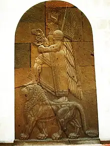 Urartu (/ʊˈrɑːrt/; Assyrian: māt Urarṭu,[5] Babylonian: Urashtu, Hebrew: אֲרָרָט Ararat) was an Iron Age kingdom centered around Lake Van in the Armenian Highlands. It extended from the eastern bank of the upper Euphrates River to the western shores of Lake Urmia and from the mountains of northern Iraq to the Lesser Caucasus Mountains.[6] The kingdom emerged in the mid-9th century BC and dominated the Armenian Highlands in the 8th and 7th centuries BC.[6] Urartu frequently warred with Assyria and became, for a time, the most powerful state in the Near East.[6] Weakened by constant conflict, it was eventually conquered by the Iranian Medes in the early 6th century BC.[7] Archaeologically, it is noted for its large fortresses and sophisticated metalwork.[6] Its kings left behind cuneiform inscriptions in the Urartian language, a member of the Hurro-Urartian language family.[6] Since its re-discovery in the 19th century, Urartu, which is commonly believed to have been at least partially Armenian-speaking,[2][8][9][10][11] has played a significant role in Armenian nationalism.[12]