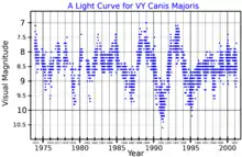 A visual band light curve for VY Canis Majoris, from AAVSO data[38]
